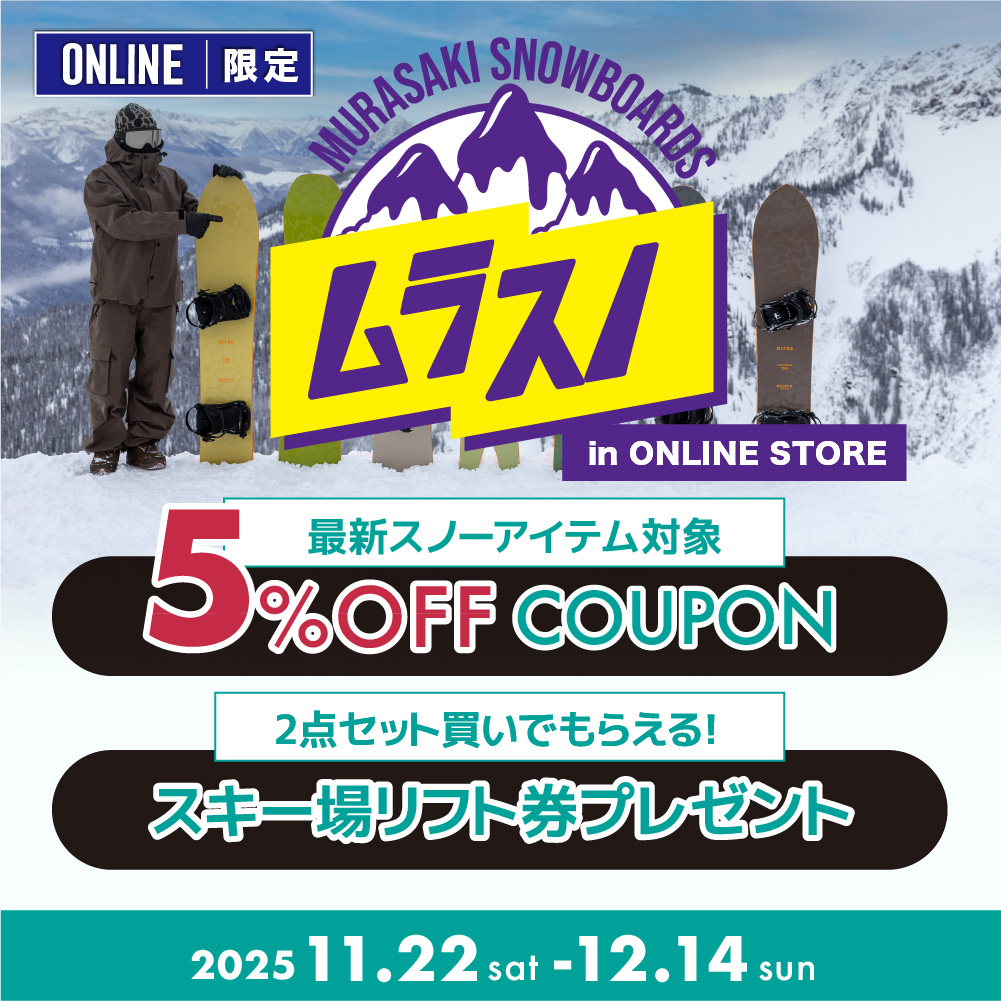 FEATURE 特集 FASHION SURF SNOW SKATE OTHER 件 スノーボード ウェア グッズ キャンペーン 【スノーボード】無料診断サービス|誰でもOK!なんでもOK! 2025/10/08 【スノーボード】ベースワックス施工"永久無料"サービス!! 2025/10/08 スノーボード初心者のための道具の選び方 2025/10/09 世界に通用するアスリート育成『MJSL』- スノーボード 2025/10/06 12月14日まで!!オンラインストア限定 スキー場リフト券が必ず貰える スノボキャンペーン 2025/11/20 【終了しました】【公式アプリ】簡単割引!スキー場リフト券 優待サービス 2025/11/18 ホワイトピアたかす紹介 2025/11/11 川場スキー場ゲレンデ紹介 2025/11/03 オグナほたかスキー場ゲレンデ紹介 2025/11/01 二ノックススノーパークゲレンデ紹介 2025/10/30 キューピットバレイゲレンデ紹介 2025/10/30 舞子スノーリゾートゲレンデ紹介 2025/10/30 スノーボードにおすすめ!おしゃれなビーニー / ニット帽 2025/10/06 キッズスノーボードシーズンレンタル 2024-25 2025/07/29 【終了】人気ブランド多数!25-26シーズンの最新スノーボードをいち早く体験できる『MURASAKI AIR MIX SNOWBOARD 試乗会』 2025/07/28 【終了】スノーボード2025-26最新モデル試乗会『SBJ ON SNOW FESTIVAL』開催! 2025/07/28 星野リゾート ネコマ マウンテン Specialコラボ!今シーズンは昨年の倍、総額1,000万規模のプレゼントキャンペーン。 2025/07/28 クーポンプレゼント!ユキヤマフクシマ×ムラサキスポーツONLINE STORE LINE友だち紹介でスノーアイテム10%OFFクーポンプレゼントキャンペーン 2025/07/28 NSDキッズプログラム シーズンパス ¥1,500で滑り放題! 2025/07/28 39 1 2