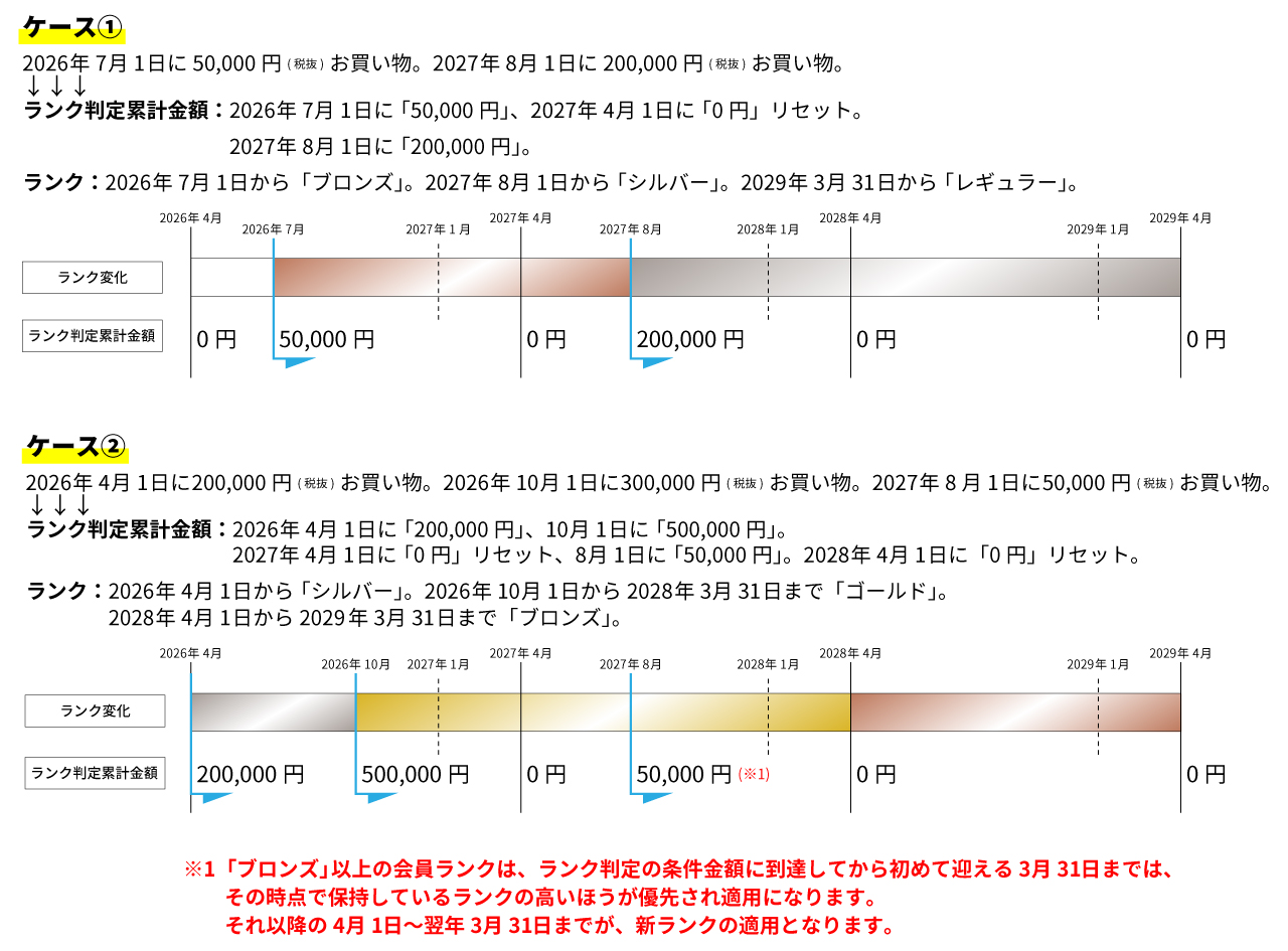 ・ランク判定累計金額は、毎年4月1日に「0円」にリセットされます。