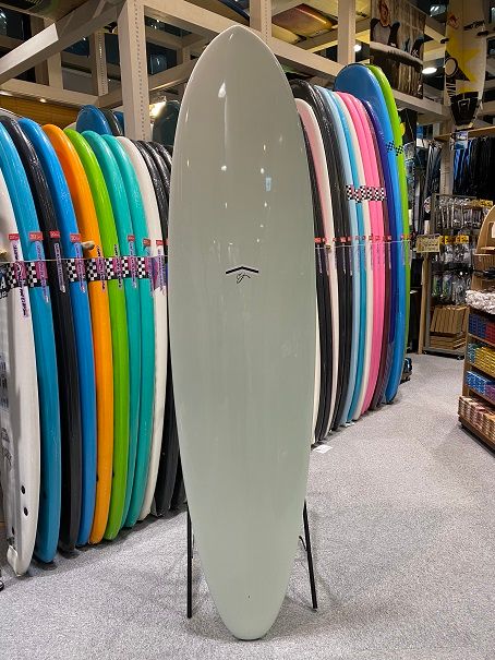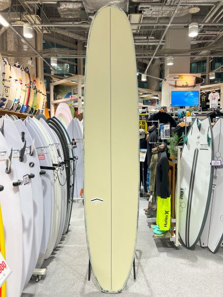 ノーズから全体的に緩やかな曲線でつながるロッカーバランスで構成されています。特徴的なのはテールエンドがフリップしており、これはノーズライディング時にテールを抑えつける効果があり、波のポケットにおいて、長く浮き上がるようなノーズライディングを可能にしてくれます。